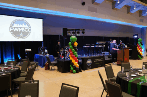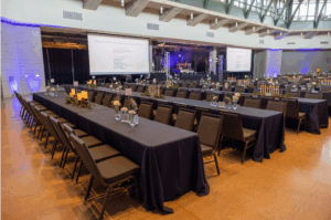 The Simmons Bank Pavilion is a dynamic 10,000 square foot space that is ideal location for any event due to its flexible configurations and removable airwalls.  The Simmons Bank Pavilion was designed to adapt to any event’s needs and capacity.  The Simmons Bank Pavilion is equipped with built-in projectors and screens, fixed speakers, mechanized window shades and dimmable overhead lighting.  It is the ideal setting for banquets, galas, celebrations and intimate concerts.  The Simmons Bank Pavilion is transformed into the training arena during the Fort Worth Stock Show & Rodeo and is utilized as a practice facility during NCAA Gymnastics and other sporting events.  The Simmons Bank Pavilion is directly below the Simmons Bank Plaza.
